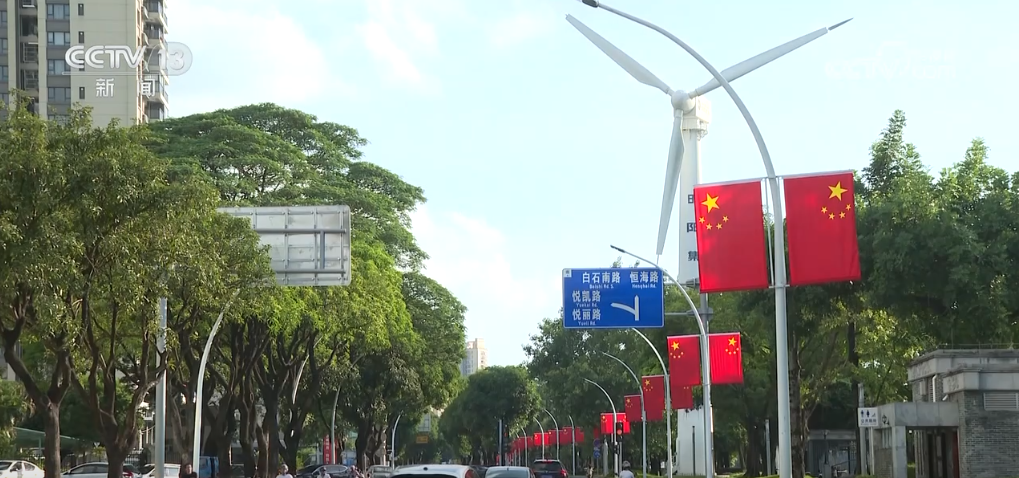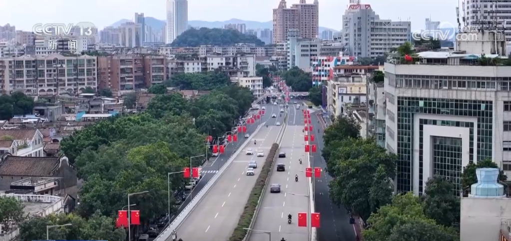 在廣東深圳,公園、廣場、街道上,處處可以看到五星紅旗迎風飄揚。紅旗與藍天、綠樹、高樓交相輝映,為城市增添了濃濃的節(jié)日氛圍。