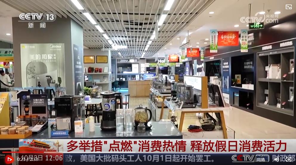 央視網(wǎng)消息:國慶假期開啟,消費(fèi)市場也迎來了旺季。各地紛紛加大力度滿足節(jié)日市場供給、保障好節(jié)日需求。同時,創(chuàng)新供給方式、推出新的消費(fèi)場景、加大文旅產(chǎn)品供應(yīng),加力推進(jìn)消費(fèi)品以舊換新,進(jìn)一步激活市場。