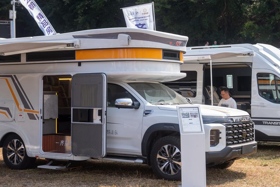 9月28日,參觀者在戶(hù)外運(yùn)動(dòng)裝備展上參觀房車(chē)。新華社記者 杜子璇 攝