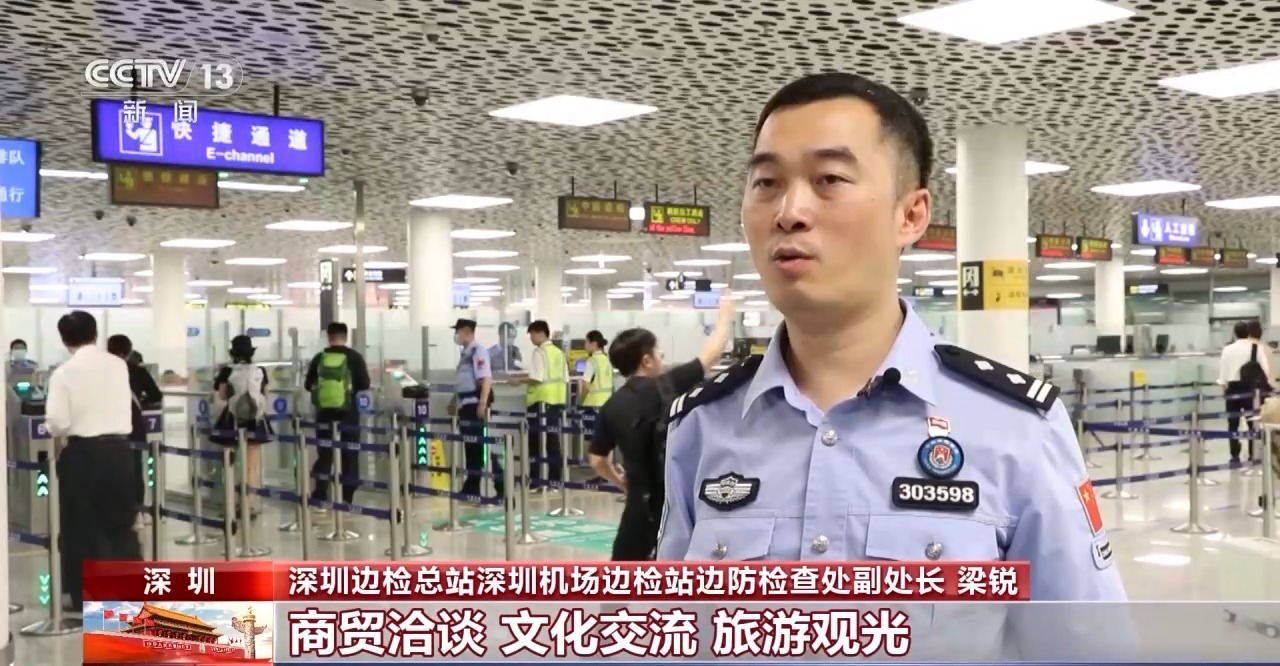 深圳邊檢總站深圳機場邊檢站邊防檢查處副處長 梁銳:今年經(jīng)深圳機場來華商貿(mào)洽談、文化交流、旅游觀光、探親訪友的入境外籍人員超36萬人次,同比增長約143%。其中,免簽入境外籍人員超13萬人次,同比增長5倍多。