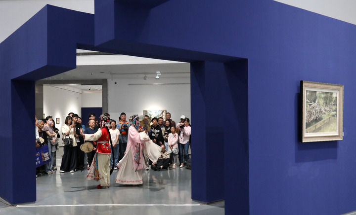 10月4日,游客在江蘇省蘇州美術館觀看昆曲《牡丹亭》。