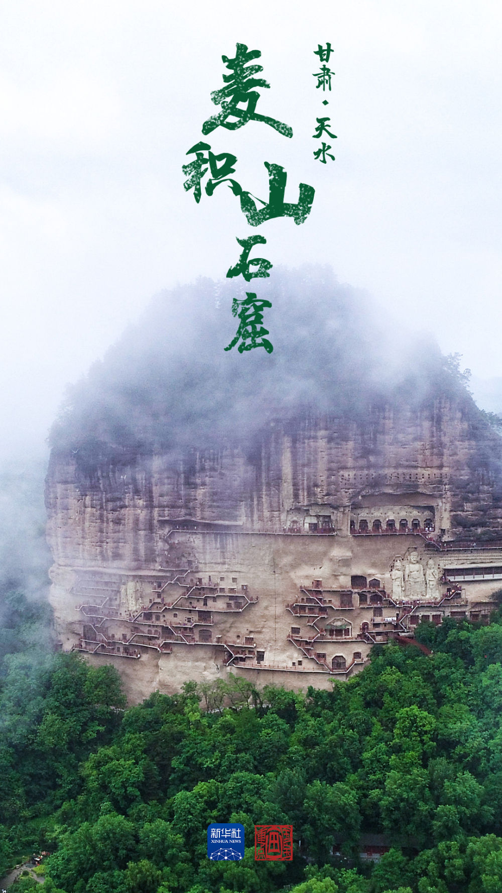 麥積煙雨是“秦州八景”之首。秦州是天水的古稱。登麥積山遠(yuǎn)眺,只見(jiàn)重巒疊嶂,滿目蒼翠中,自然景觀與文化遺產(chǎn)完美融合,恰如一幅山水畫。