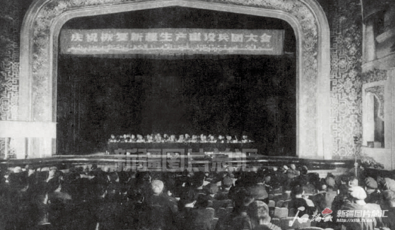 1982年6月1日,慶?;謴?fù)新疆生產(chǎn)建設(shè)兵團大會在烏魯木齊舉行。新疆圖片總匯資料圖片