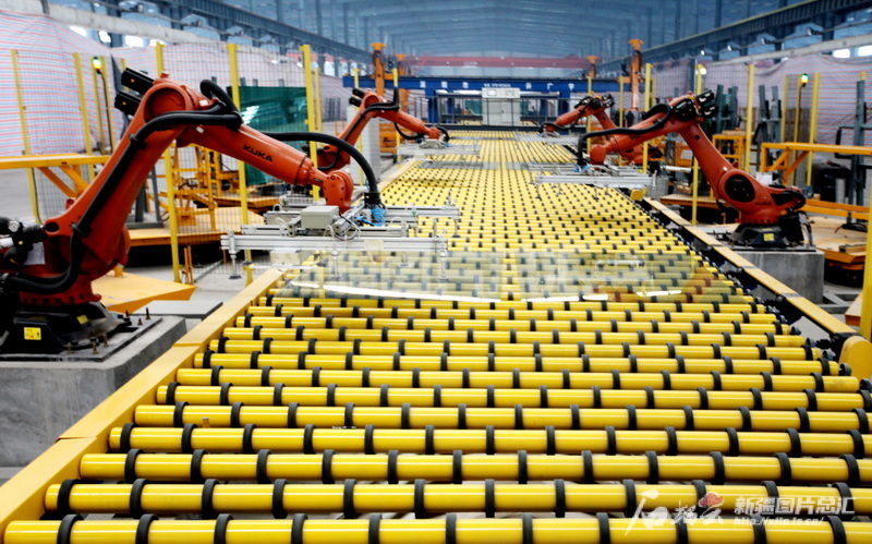 2016年8月,位于新疆生產(chǎn)建設(shè)兵團第五師的新疆普耀新型建材有限公司生產(chǎn)車間內(nèi)景。新疆圖片總匯資料圖片