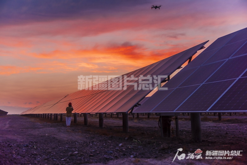 2017年5月9日拍攝的新疆生產(chǎn)建設(shè)兵團第十三師紅山農(nóng)場三塘湖風(fēng)光電基地外景。王志清攝