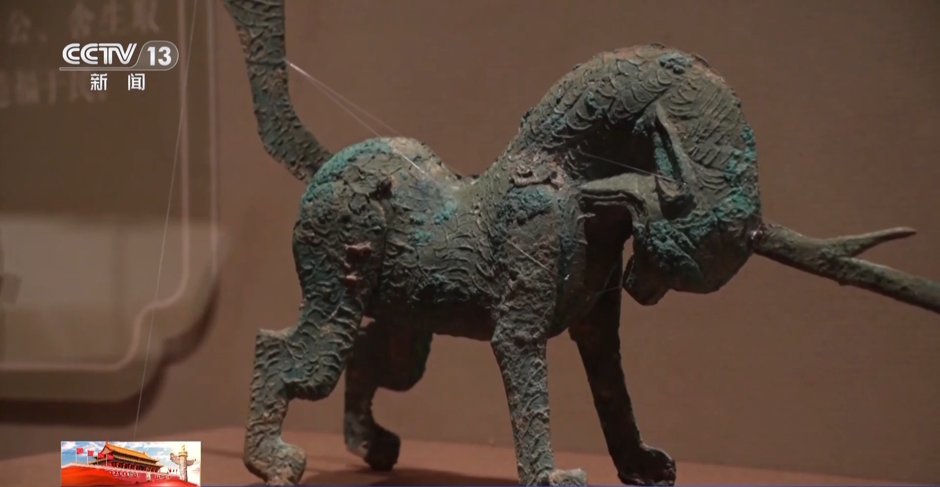 在展覽中,還有各種以物喻廉的寶貝。圖中的文物可不是獨(dú)角獸,是一只2000歲的漢代獬豸。獬豸這種傳說中的神獸,執(zhí)法公正嚴(yán)明,永遠(yuǎn)會(huì)用長長的角對準(zhǔn)犯罪的一方。另外,中國人是什么時(shí)候開始思考“廉潔”的?這就要問一件西周重器了。