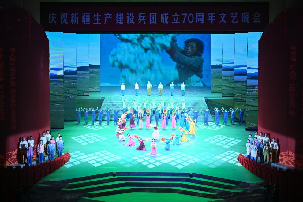 10月6日,慶祝新疆生產(chǎn)建設(shè)兵團成立70周年文藝晚會《光榮使命》在烏魯木齊文化中心大劇院舉行。