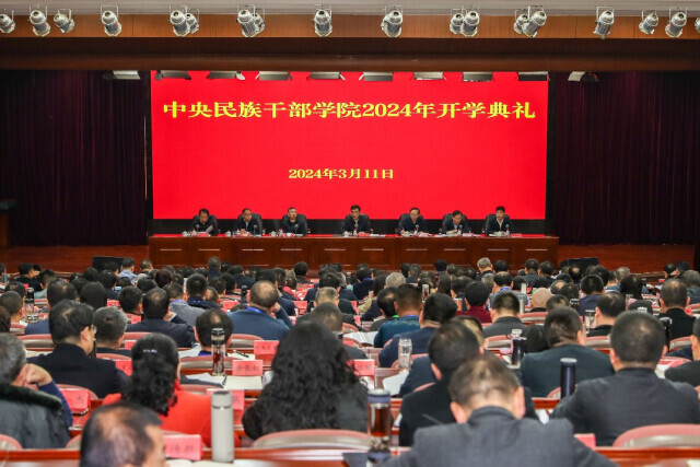 ▲3月11日,中央民族干部學院2024年開學典禮暨全國民委系統(tǒng)鑄牢中華民族共同體意識輪訓班(第一期)舉行開班式。來源:中央民族干部學院