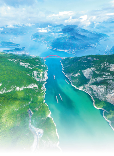 綠色轉(zhuǎn)型,高質(zhì)量發(fā)展動(dòng)能澎湃。黃金水道暢通低碳,今年前7月長江干線港口完成貨物吞吐量超22億噸,純電動(dòng)游輪往來穿梭、綠色港口點(diǎn)綴其間。“綠色引擎”更加強(qiáng)勁,烏東德、白鶴灘、溪洛渡、向家壩、三峽、葛洲壩6庫聯(lián)調(diào),1滴長江水發(fā)6次電,世界最大清潔能源走廊總裝機(jī)容量達(dá)7169.5萬千瓦。創(chuàng)新引領(lǐng)綠色發(fā)展,現(xiàn)代產(chǎn)業(yè)集群快速壯大,新動(dòng)能新優(yōu)勢積極塑造發(fā)展。