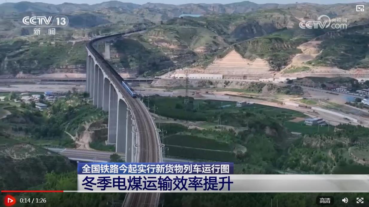 央視網(wǎng)消息:記者從國鐵集團獲悉,10月11日起,全國鐵路實行新的貨物列車運行圖。此次調(diào)圖,正值冬季電煤運輸關(guān)鍵期,全國鐵路進一步增加了煤炭運輸能力。