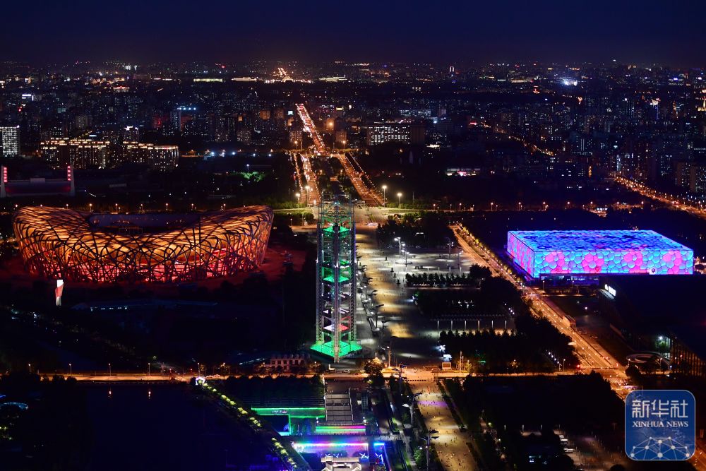 這是2022年6月23日拍攝的國(guó)家體育場(chǎng)(左)與國(guó)家游泳中心夜景。作為“雙奧之城”的標(biāo)志性場(chǎng)館群“冰絲帶”、“鳥巢”、“冰立方”聯(lián)動(dòng)亮燈,共同傳遞奧林匹克精神,號(hào)召民眾用運(yùn)動(dòng)點(diǎn)亮健康生活,創(chuàng)造美好未來(lái)。 新華社記者 張晨霖 攝