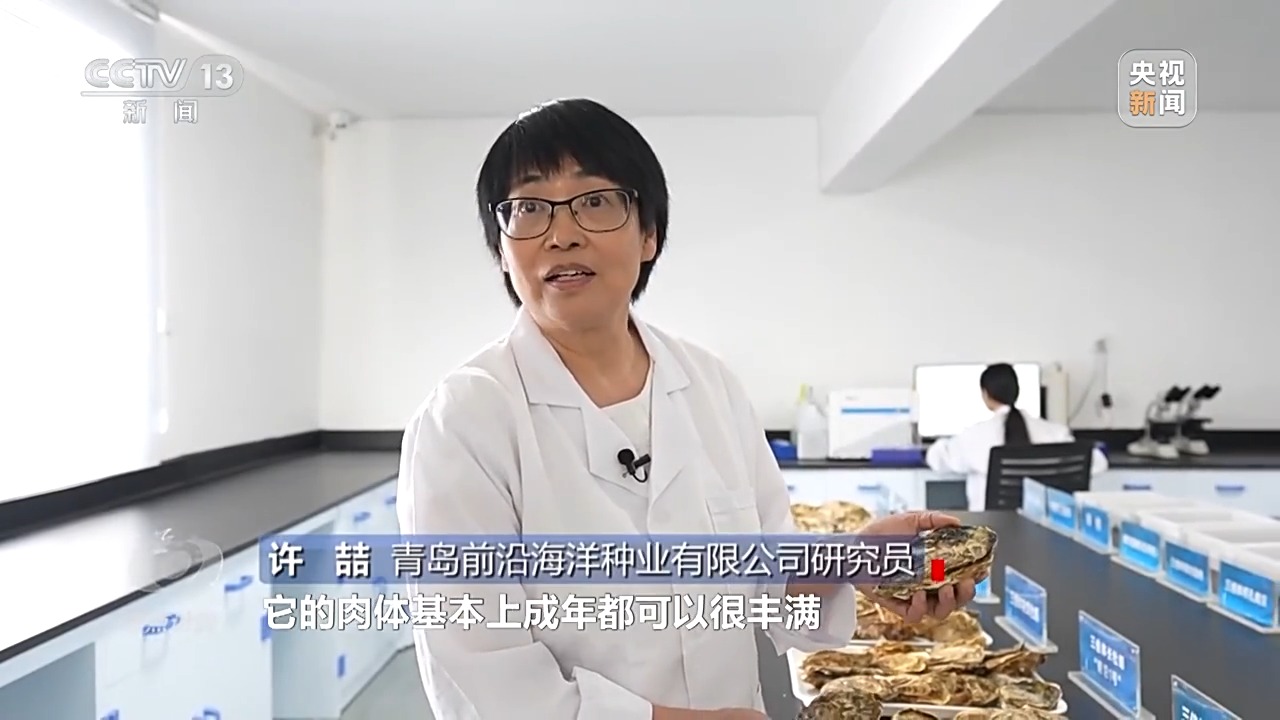 青島前沿海洋種業(yè)有限公司研究員 許喆:“正常的牡蠣都是二倍體,它們兩個的年齡差不多,二倍體要比三倍體小很多,因?yàn)槿扼w多了一套染色體,繁殖季節(jié)不排漿,它的肉體基本上全年都可以很豐滿,可以提供給大家鮮美的生蠔。”