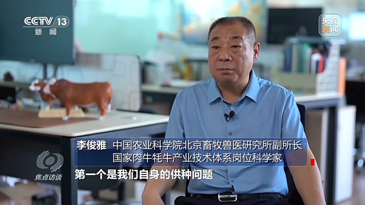 中國農(nóng)業(yè)科學(xué)院北京畜牧獸醫(yī)研究所副所長、國家肉牛牦牛產(chǎn)業(yè)技術(shù)體系崗位科學(xué)家 李俊雅:“核心種源依然依靠進(jìn)口,存在很多問題,一是我們自身的供種問題,在特殊時期,如果我們不能從國外進(jìn)口相應(yīng)的優(yōu)秀種質(zhì),我該怎么做;另外,我們引的這些國外的品種基本上都不是本品種的最優(yōu)秀種牛或者種牛的凍精。我們必須要培育出滿足我們國家主流市場供給型的品種。