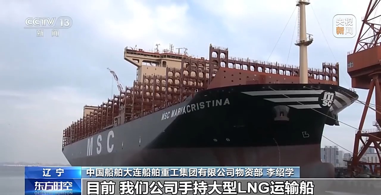 這兩天,大連這家船舶公司一艘在建大型液化天然氣(LNG)運輸船停靠在碼頭泊位,近千名工人正在進行船舶舾裝作業(yè)。在碼頭的另一側,一艘LNG雙燃料集裝箱船正在做交付前最后的調試。這艘海上“巨無霸”采用天然氣和燃油雙燃料驅動,能夠減少碳排放20%以上,減少100%的硫氧化物排放。