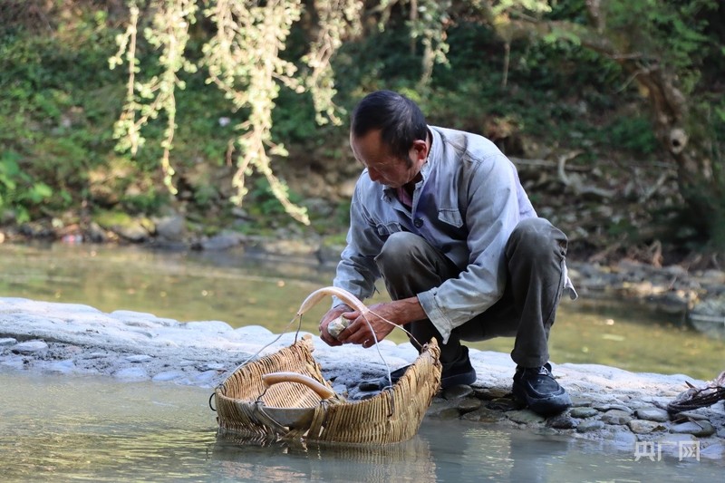 詹金發(fā)清洗瓷石(央廣網(wǎng)記者 周蓓 攝)