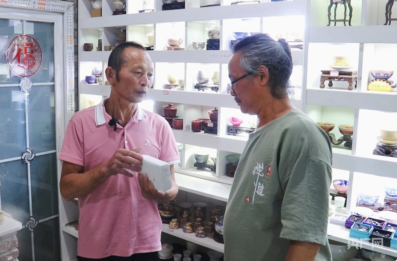 在繞南陶瓷主題園區(qū),詹金發(fā)和同事給游客分別展示、講解釉果制作技藝和水碓加工技藝,讓更多人對傳統(tǒng)的陶瓷加工技藝產(chǎn)生興趣。詹金發(fā)這一講解就是十多年。