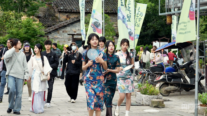 放眼古鎮(zhèn),隨處可見游客著一身旗袍或者漢服在古鎮(zhèn)之中游玩拍照,在古建筑群中穿梭游走。沿路攤位琳瑯滿目的陶瓷文創(chuàng)產(chǎn)品、瑤河中古色古香的花船表演、非遺傳承人現(xiàn)場表演……層出不窮的古鎮(zhèn)文化引得游客們紛紛駐足觀看,在古鎮(zhèn)體驗(yàn)一半煙火一半詩意。