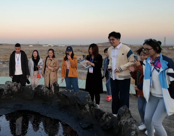 在黑油山最著名的景點——“跳跳泉油池”,黑油山景區(qū)講解員麥爾哈巴·肉扎洪帶領(lǐng)訪問團代表們利用壓力傳導(dǎo)作用,在它的周圍邊喊邊跳,眼見著它冒的泡泡越來越多,讓大家興奮不已。麥爾哈巴·肉扎洪說:“經(jīng)過三代人的努力,克拉瑪依變成了現(xiàn)在這樣宜居宜業(yè)宜游的現(xiàn)代化高品質(zhì)城市,希望可以把克拉瑪依艱苦創(chuàng)業(yè)的精神傳達給大家,也可以把這種活力傳達給大家?!?/p>