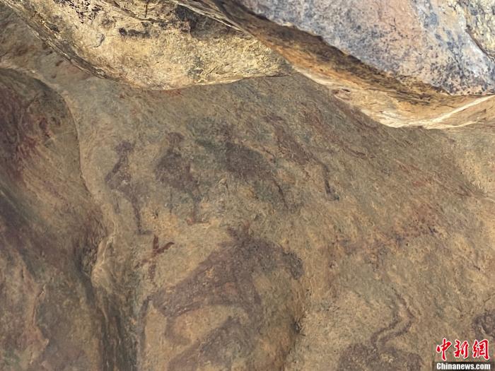 富含鐵礦石和動物膠質的顏料將這一幕拓印在避風的巨石上,距離胡安什別克家40多公里的汗德尕特蒙古族鄉(xiāng)敦德布拉克河谷,走一段路,就能相遇這幅萬年前的人類滑雪活動的“活化石”。