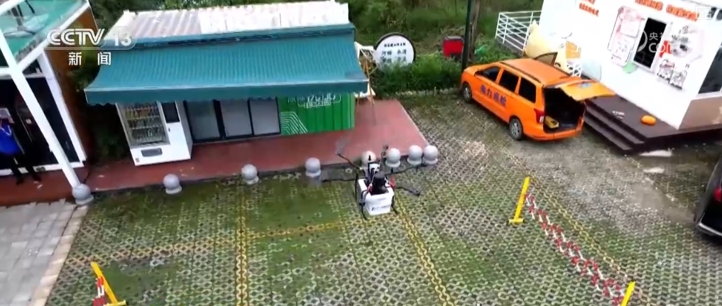 在成都市新都區(qū)的一處快遞分揀中心前,隨著操作人員在控制臺按下指令,載著快遞包裹的無人機(jī)轉(zhuǎn)動旋翼、騰空而起,按照設(shè)定航線,飛越17公里的農(nóng)田山林。20分鐘后,無人機(jī)緩緩降落在清流鎮(zhèn)水梨村。住在附近的村民張女士在收到快遞短信后來到快遞驛站,取出了自己的包裹。