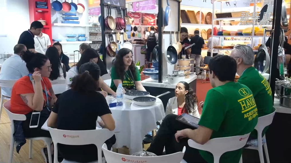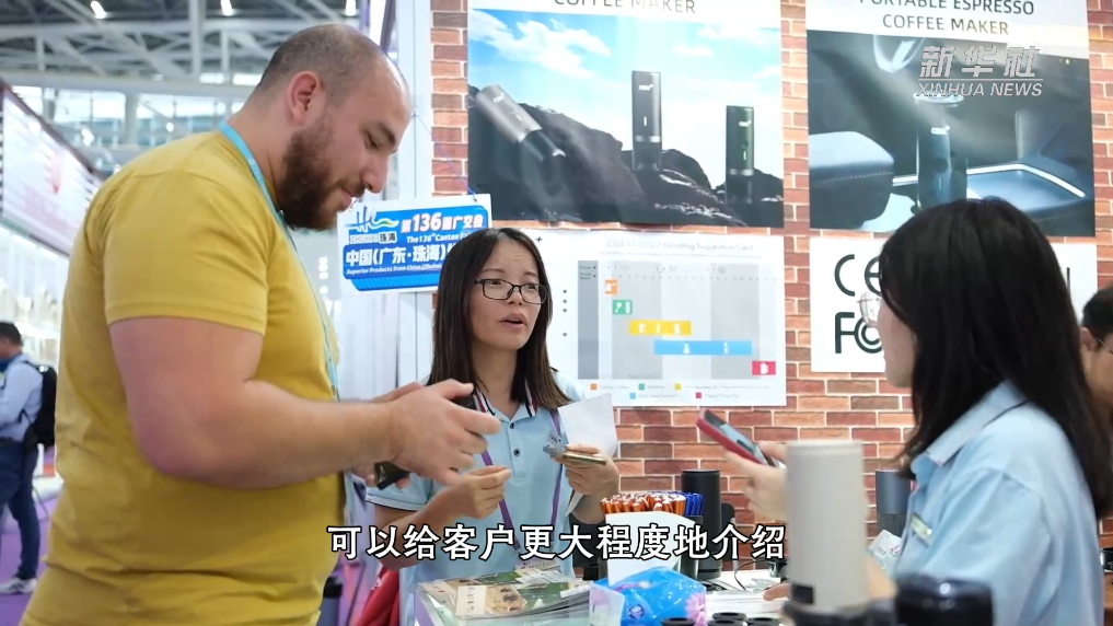 記者體驗可移動式民宿酒店、便攜式咖啡機等產品,在廣交會上感受中國制造的品質與實力。