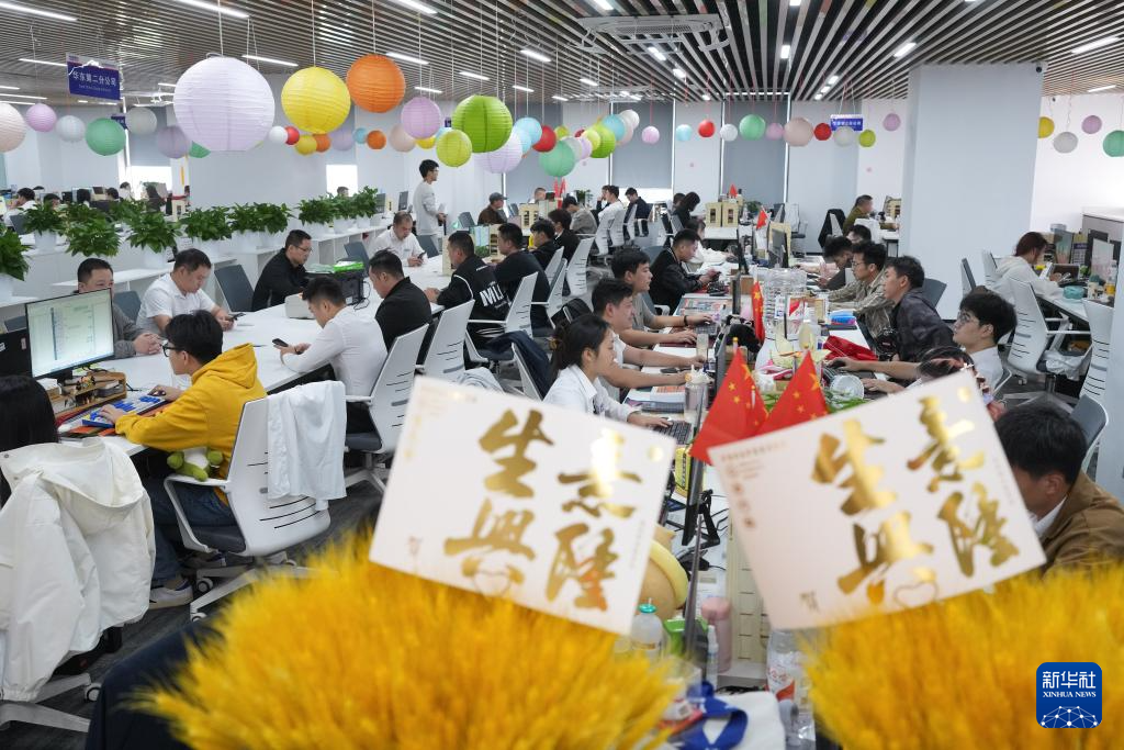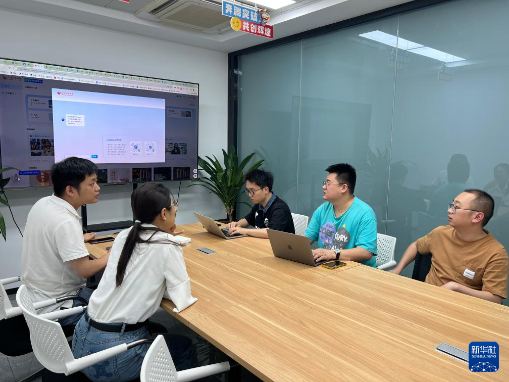 Chinagoods AI智創(chuàng)服務(wù)平臺的技術(shù)人員在討論一款新產(chǎn)品的設(shè)計(5月17日攝)。新華社發(fā)