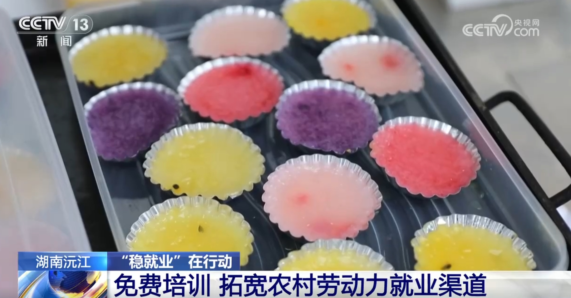 在湖南沅江人社局定期舉辦的免費職業(yè)技能培訓(xùn)班上,學(xué)員們正在學(xué)習(xí)蛋糕制作。