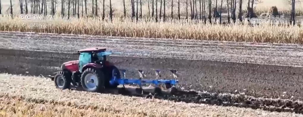 從空中看去,未收獲的地方是呈現(xiàn)金色,收割后的地面,大型的翻地機(jī)跟在后面將秸稈直接翻入地下,翻地車一過(guò)就露出油汪汪的黑土地了。這些翻完的地之后還要耙平、起壟,這樣第二年開春可以直接種植了。記者在當(dāng)?shù)夭稍L期間,看到了這些農(nóng)戶幾乎是24小時(shí)晝夜不停在進(jìn)行收割和秋整地,可以說(shuō)是“人歇機(jī)器不歇”,在搶抓農(nóng)時(shí),當(dāng)?shù)赜芯湓捊小敖鹕x田、黑色越冬”。