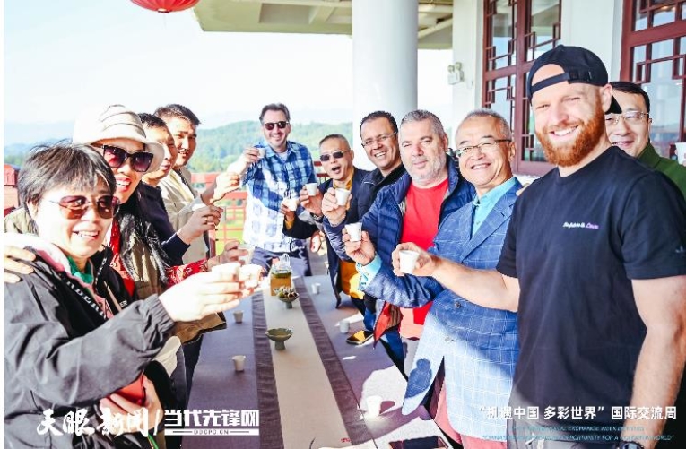 “機(jī)遇中國 多彩世界”國際交流周期間,當(dāng)滿載駐華使節(jié)與專家參訪團(tuán)的客車行駛到湄潭縣時(shí),一片片修剪整齊的茶園點(diǎn)綴著車窗外的景色,遠(yuǎn)處青瓦白墻的黔北民居,在秋日朝陽的照射下,映襯著未完全散去的白霧,恍如仙境。