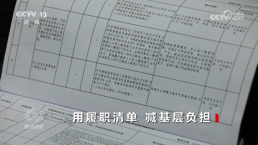 央視網(wǎng)消息(焦點(diǎn)訪談):“上面千條線,底下一根針”,人們經(jīng)常用這句話來描述鄉(xiāng)鎮(zhèn)干部的基層工作狀況。也有人用“小馬拉大車”形象地描述基層干部在實(shí)際工作中所面臨的滿負(fù)荷狀態(tài)。為了減輕基層負(fù)擔(dān),2024年8月,中共中央辦公廳、國務(wù)院辦公廳印發(fā)《整治形式主義為基層減負(fù)若干規(guī)定》,其中明確提出,要規(guī)范明晰基層權(quán)責(zé),建立健全職責(zé)清單。那么,目前基層權(quán)責(zé)明晰做得如何呢?