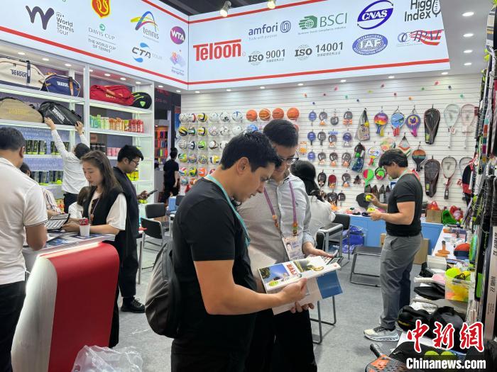 泰山體育產(chǎn)業(yè)集團有限公司帶來的板式網(wǎng)球場成為該展位的“人氣王”?!鞍寰W(wǎng)球(板式網(wǎng)球)是一項在海外以休閑為主的運動具備較強的健身效果和觀賞性。近年來隨著中國網(wǎng)球選手在國際賽事中的優(yōu)秀表現(xiàn),這項運動在中國也逐漸受到了更多關(guān)注。”據(jù)該公司展位負責(zé)人劉澤輝介紹,此前企業(yè)的板網(wǎng)球場已經(jīng)在南美洲和中東等地區(qū)暢銷,“參加本屆廣交會,發(fā)現(xiàn)青睞我們產(chǎn)品的采購商很多,簡單咨詢后就開始商量價格”。