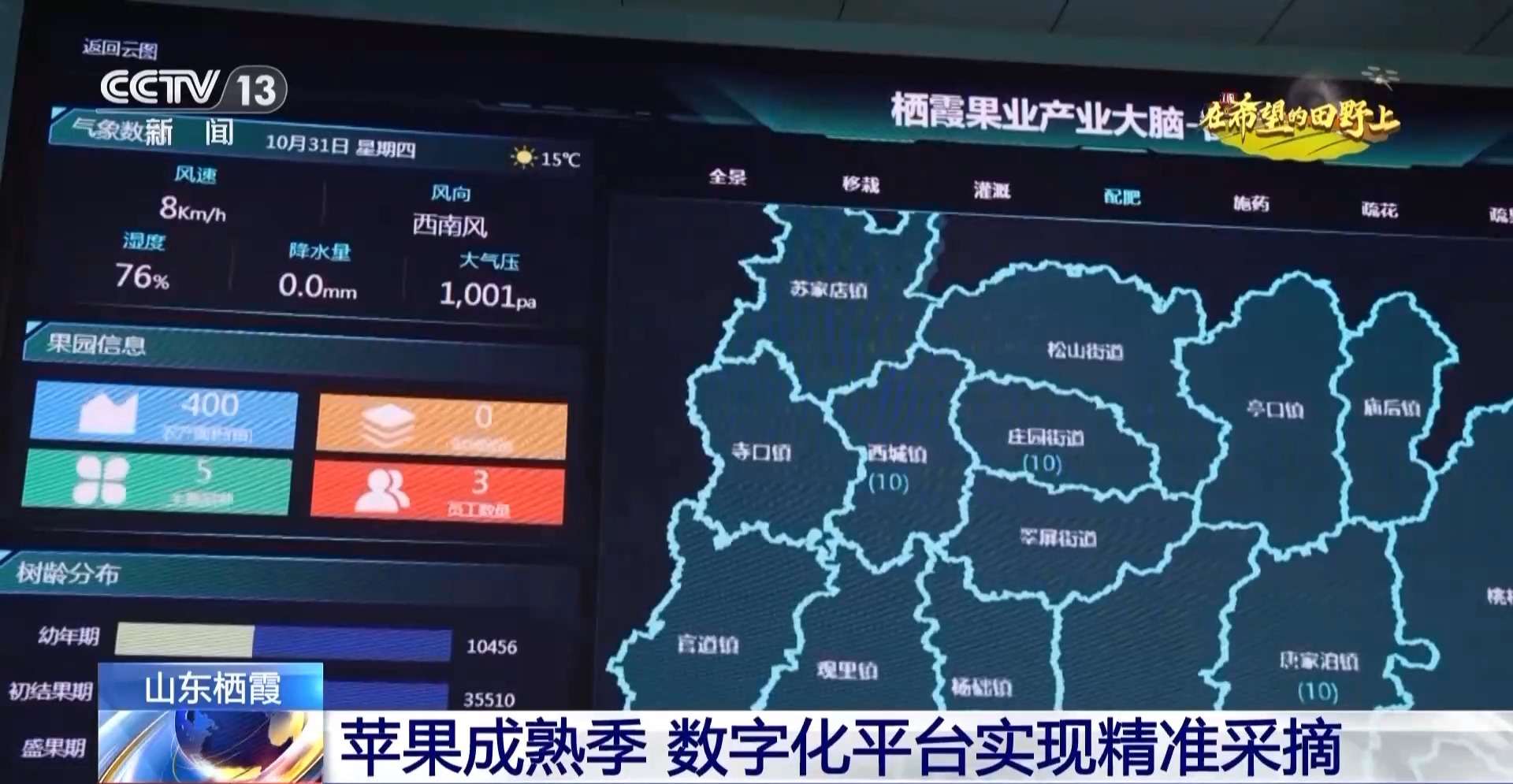 棲霞市供銷合作社聯(lián)合社負責人 李國勇:通過這個大屏,我們可以清楚地看到果樹的生長情況,平臺也會將果樹生長情況相關(guān)信息通報給果農(nóng)進行精準采摘。