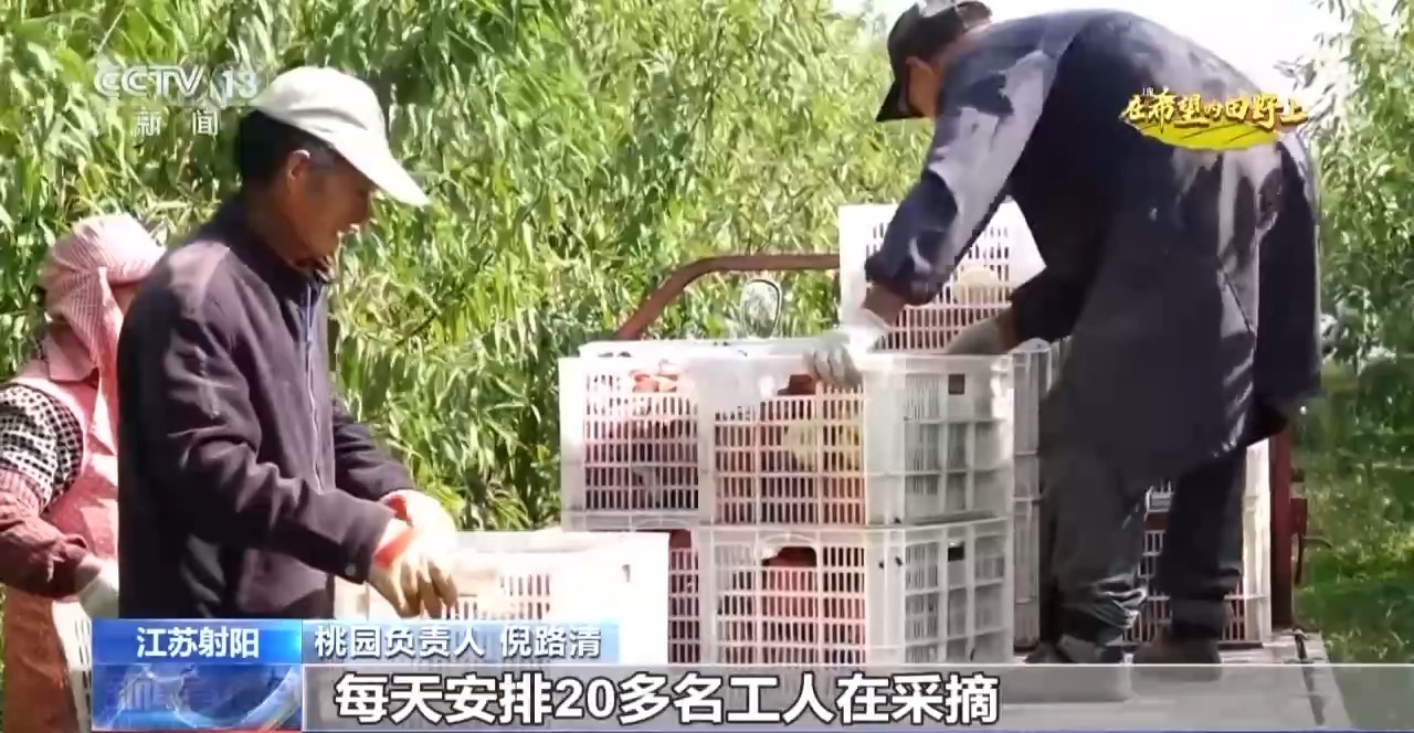 在鹽城市射陽縣新坍鎮(zhèn)的一處桃園種植了4萬多株桃樹。果農(nóng)們忙著摘桃、分揀、裝筐,預計整個采摘銷售期能持續(xù)一個月左右。