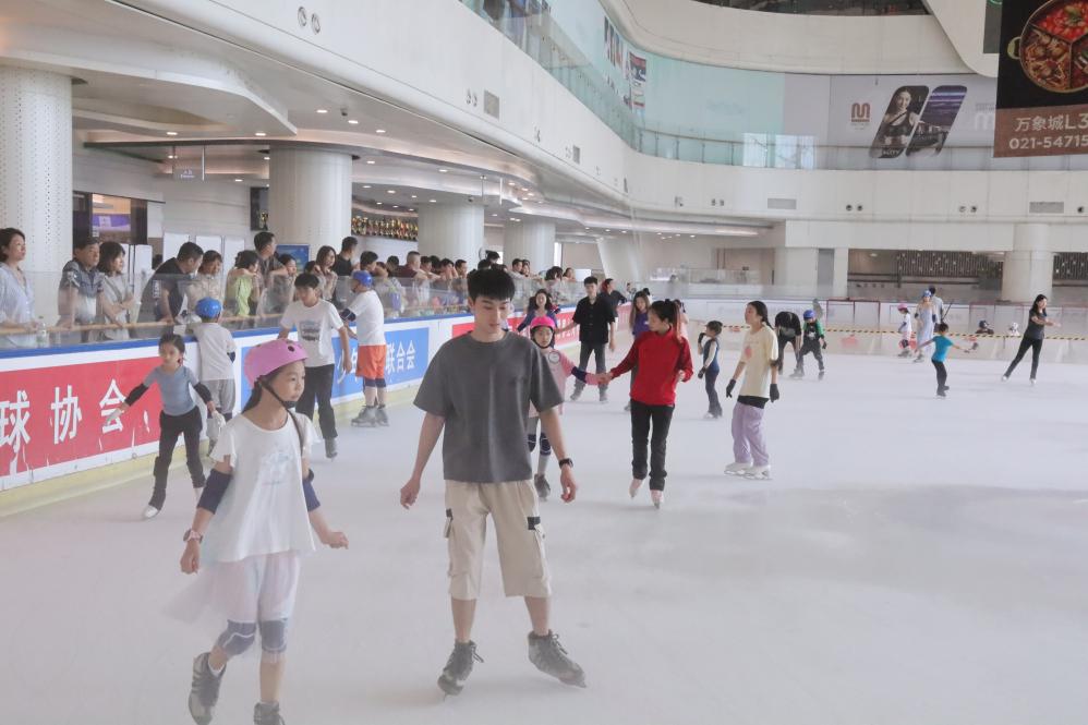 位于上海市閔行區(qū)的華潤(rùn)上海萬(wàn)象城冰場(chǎng),今年暑假日均接待量超過(guò)340人次,其中約80%是前來(lái)訓(xùn)練的青少年學(xué)員。上海市民王蓓的女兒長(zhǎng)期在此訓(xùn)練,商圈餐飲、游樂(lè)、電影院、書(shū)店、購(gòu)物等業(yè)態(tài)齊全,女兒滑冰訓(xùn)練結(jié)束后,一家人在此休閑一整天。