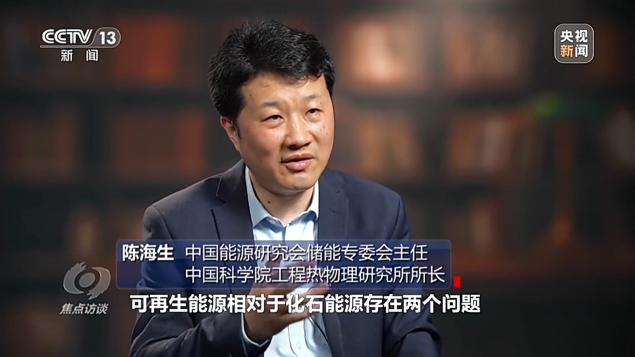 中國能源研究會儲能專委會主任、中科院工程熱物理研究所所長 陳海生:可再生能源相對于化石能源存在兩個問題,一個就是可再生能源的能量密度比較低,比如說風(fēng)能、太陽能,這就需要轉(zhuǎn)換成更加強(qiáng)有力的能源形式,比如說我們通過風(fēng)力發(fā)電、光伏發(fā)電轉(zhuǎn)化成電。另外一方面就是可再生能源存在著間歇性、不穩(wěn)定性,就是我們通常所說的靠天吃飯,這就需要儲能,將可再生能源轉(zhuǎn)化成連續(xù)穩(wěn)定的能源,就對新型儲能提出了重大的需求。