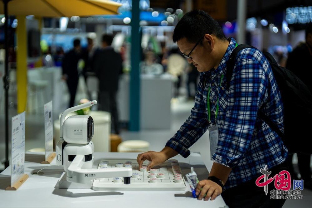 進(jìn)博會(huì)人工智能專區(qū)展示的外墻清潔機(jī)器人。中國(guó)網(wǎng)記者