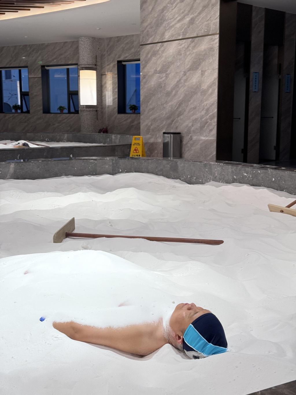 運城鹽湖打造出了以鹽為本的“五絕”康養(yǎng)休閑體驗之一——醫(yī)用溫泉水療。這里的溫泉水源自鹽湖中心腹地2121米深處,為氟、鍶型地熱礦泉水,醫(yī)用價值高。澎湃新聞記者 金向玉 攝