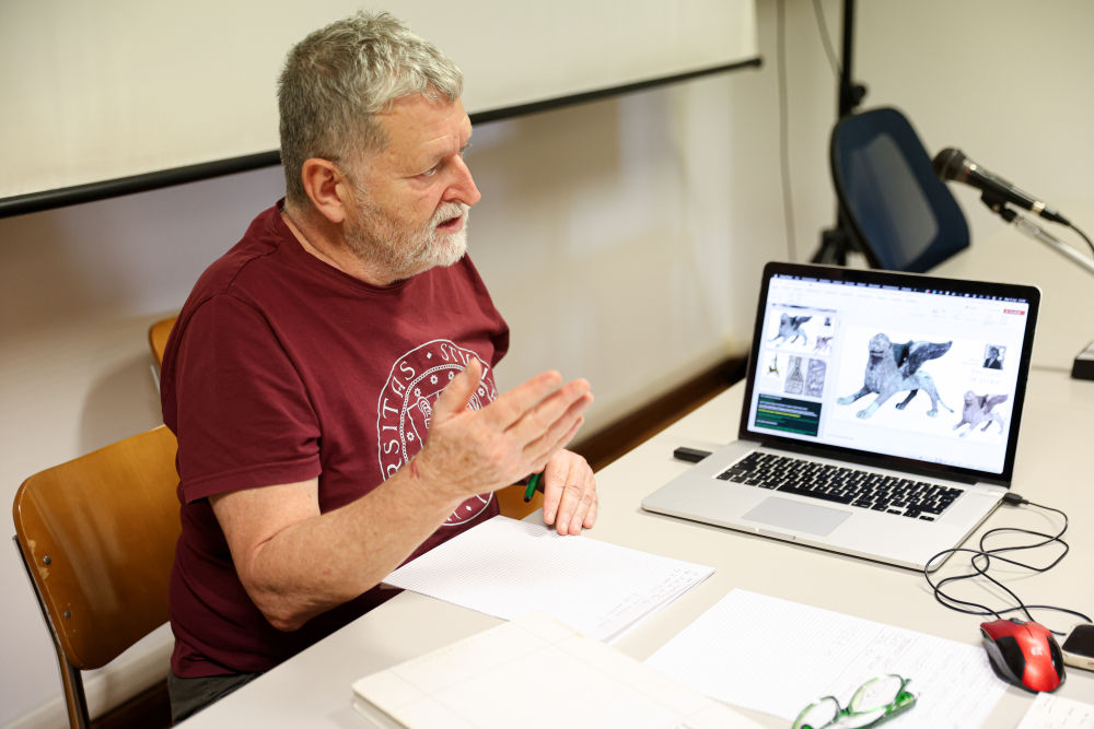 11月5日,意大利帕多瓦大學文化遺產學院教授馬西莫·維達萊介紹“威尼斯之獅”研究相關情況。新華社記者李京攝