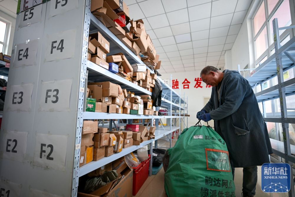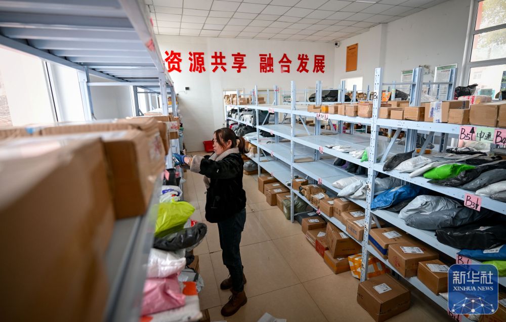 11月10日,隆德縣聯(lián)財鎮(zhèn)客貨郵商旅綜合便民服務(wù)站工作人員在整理快遞。