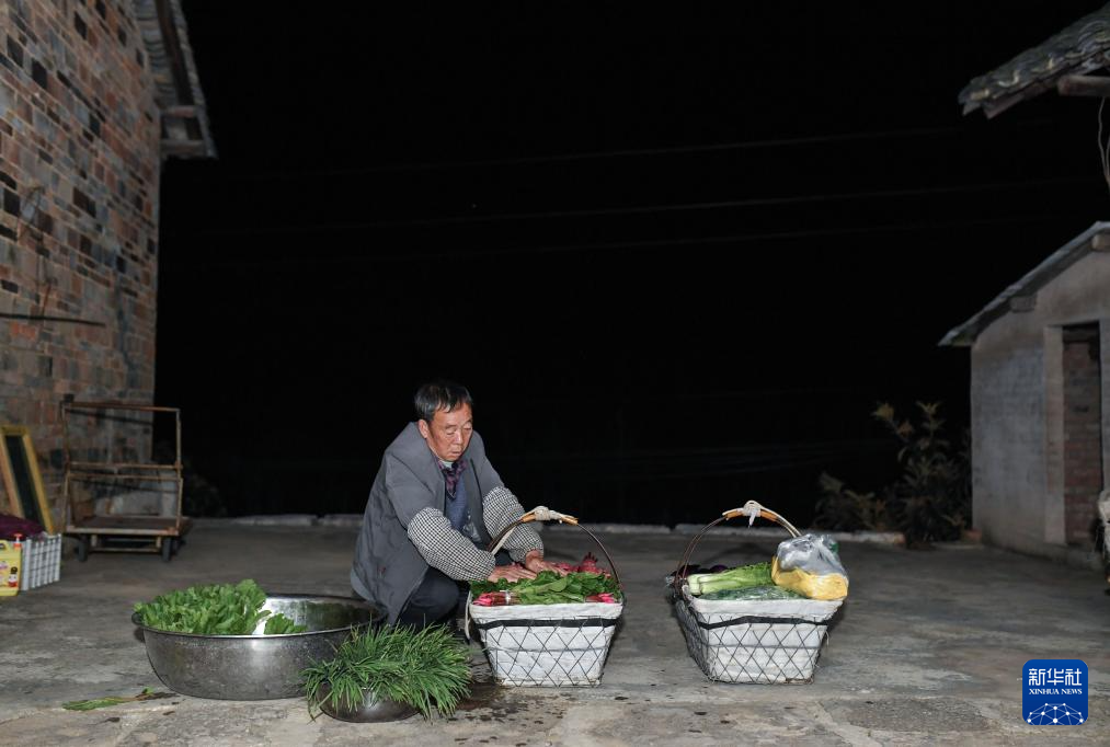 貴陽市烏當區(qū)水田鎮(zhèn)定扒村的菜農(nóng)在整理蔬菜,準備乘坐252路“惠農(nóng)專線”公交車進城賣菜(11月7日攝)。