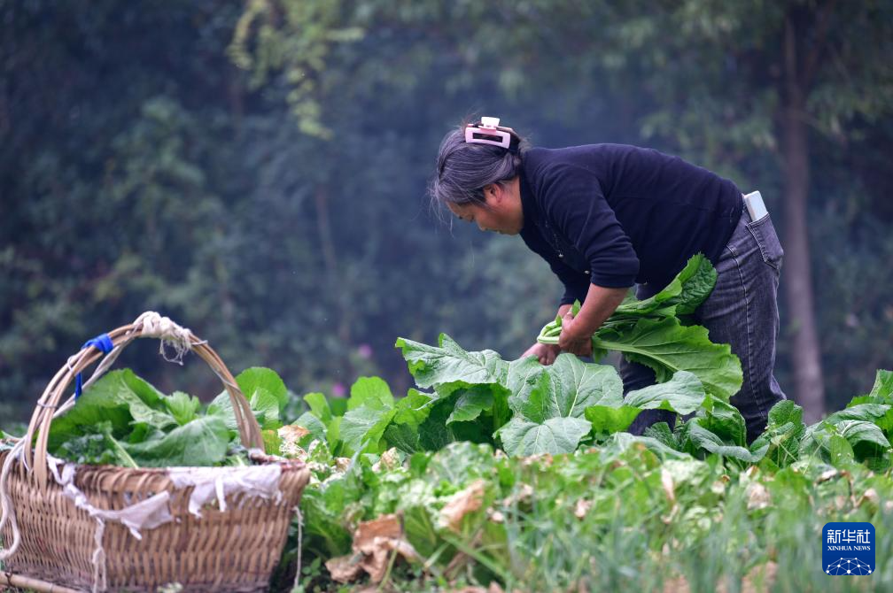 貴陽市烏當區(qū)下壩鎮(zhèn)下壩村的村民在地里摘菜,準備第二天進城售賣(11月6日攝)。