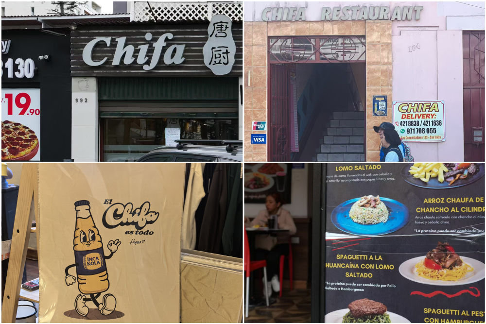 綿延不斷的人文交流,讓秘魯?shù)娘嬍硯狭嗣黠@的中餐印記:中餐館在秘魯被稱作“Chifa”(吃飯)(左上、右上)。炒飯(Chaufa)作為常規(guī)食物,登上了大多數(shù)當(dāng)?shù)夭宛^的菜單(右下)。Chifa一詞,還被利馬的年輕畫(huà)家化用為文化符號(hào),與本土飲料“印加可樂(lè)”一起融入到藝術(shù)創(chuàng)作中(左下)。