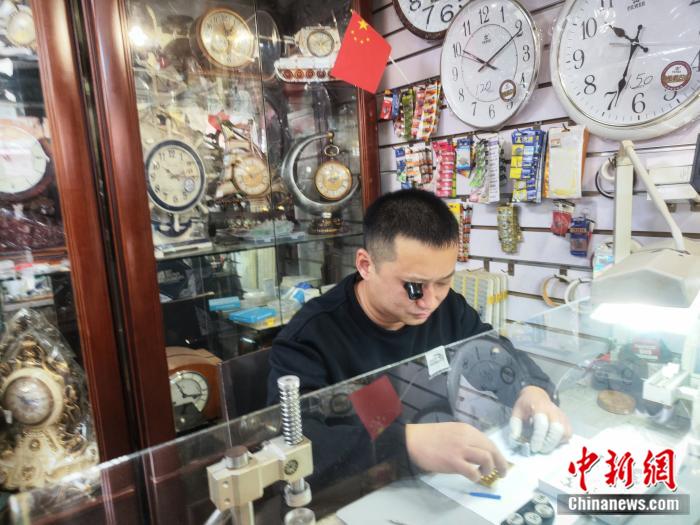 不遠處,聚亨鐘表店的王晴川正低頭專注修表。這家修表店已經(jīng)傳承了三代人,五年出徒,十年大成,他在此開店已二十三年。秒針的滴答作響中,時間被賦予了新的意義和價值。