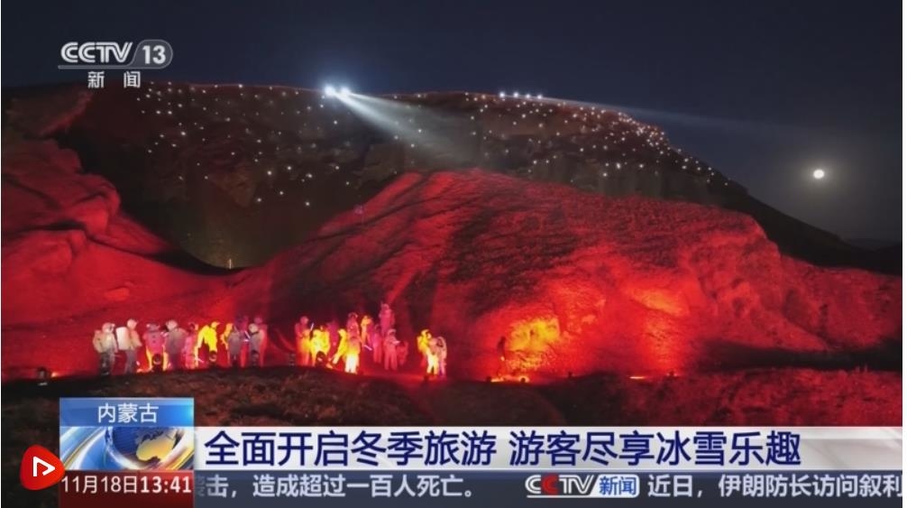 烏蘭察布市的烏蘭哈達火山地質(zhì)公園分布著不同類型、不同規(guī)模的火山30多座,火山群鑲嵌在廣闊的草原之上,被譽為天然的“火山博物館”。為了增強游客的體驗感,這個冬季,當(dāng)?shù)卮蛟炝颂厣鹕綗艄庑恪?/p>