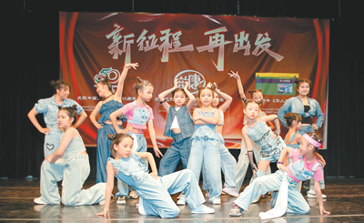 圖為唐韻藝術團成立25周年匯報演出中,少兒爵士舞班在表演節(jié)目。受訪者供圖