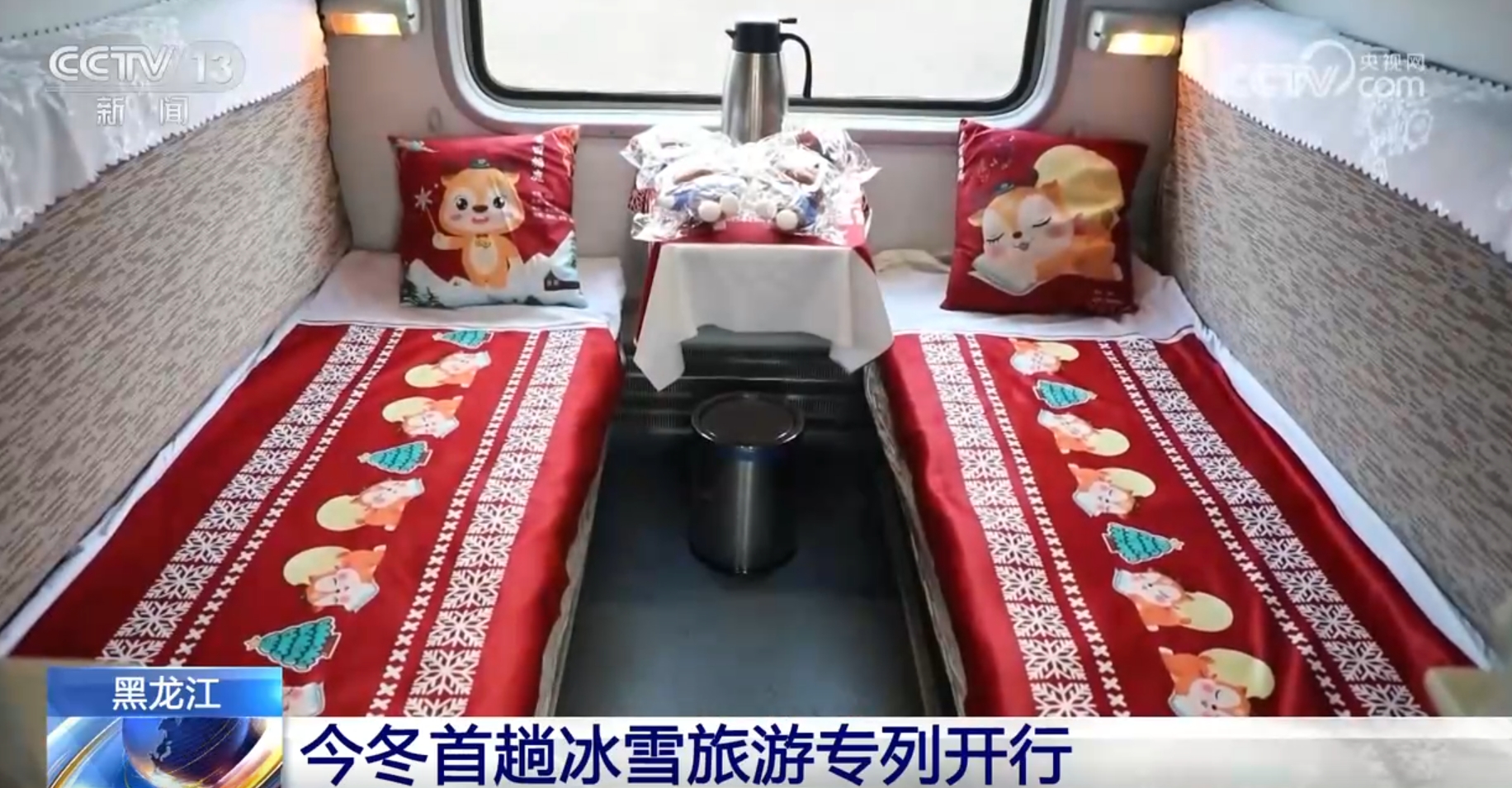 為了滿足各地游客的出行需求,沿途車(chē)站開(kāi)辟了專(zhuān)用候車(chē)區(qū)域,安排專(zhuān)人引導(dǎo)出行,提高進(jìn)出站效率。同時(shí)車(chē)廂臥具、抱枕裝飾了冰雪、民俗文化的主題元素,專(zhuān)列上還安排了列車(chē)管家,配備應(yīng)急藥品。行李還可寄存在車(chē)上,游客游玩更輕松。