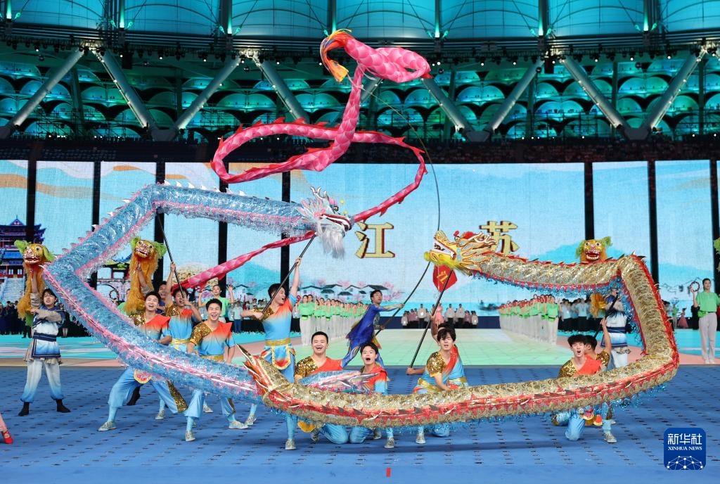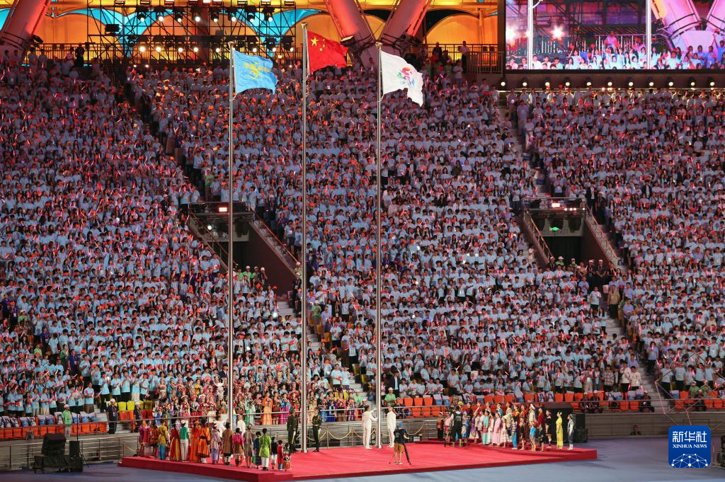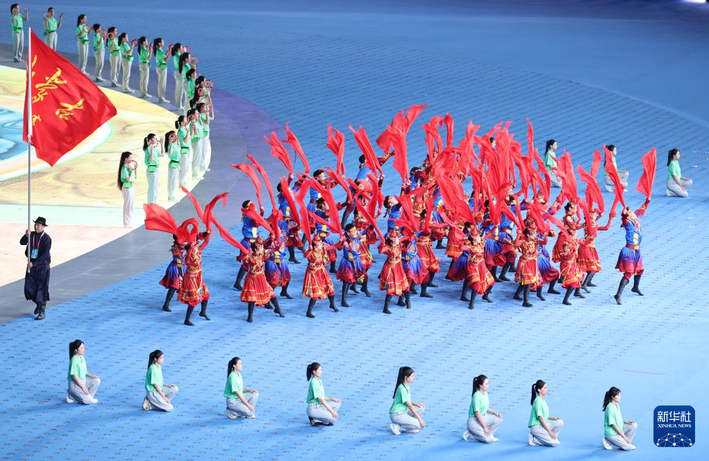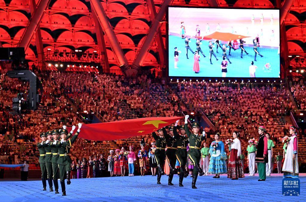 11月22日,開(kāi)幕式現(xiàn)場(chǎng)升起中華人民共和國(guó)國(guó)旗、中華人民共和國(guó)少數(shù)民族傳統(tǒng)體育運(yùn)動(dòng)會(huì)會(huì)旗和中華人民共和國(guó)第十二屆少數(shù)民族傳統(tǒng)體育運(yùn)動(dòng)會(huì)會(huì)旗。