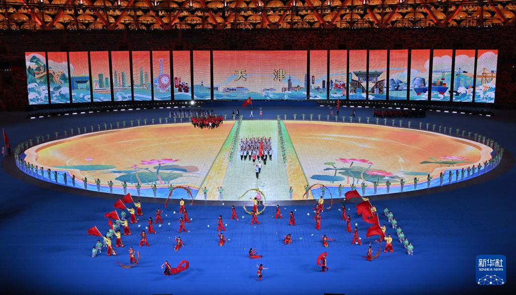 11月22日,天津市代表團(tuán)在開(kāi)幕式上入場(chǎng)。