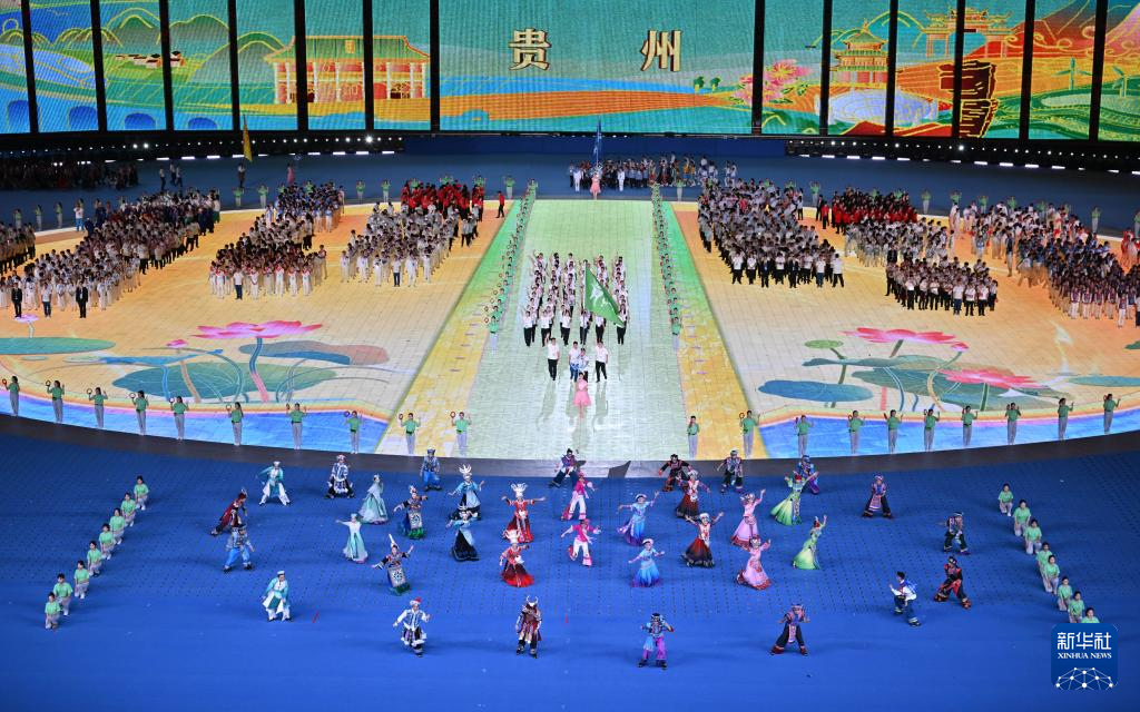 11月22日,貴州省代表團(tuán)在開(kāi)幕式上入場(chǎng)。