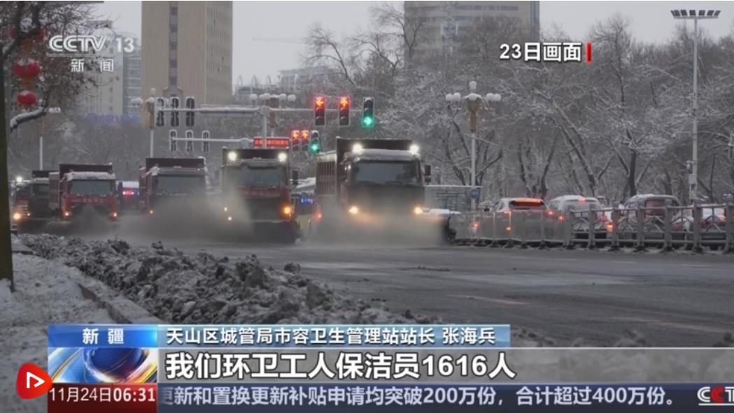 11月22日下午到11月23日16時,烏魯木齊迎來降雪,最大積雪深度達20厘米。城管部門連夜作業(yè),快速出動大型清雪車輛和環(huán)衛(wèi)工人進行清雪。